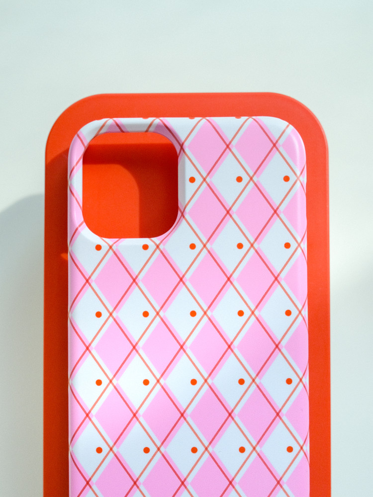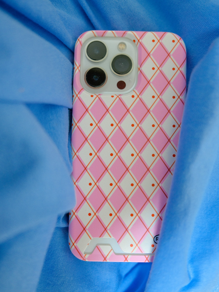 iPhone Card Pocket Hard Case - Pink Argyle Knit